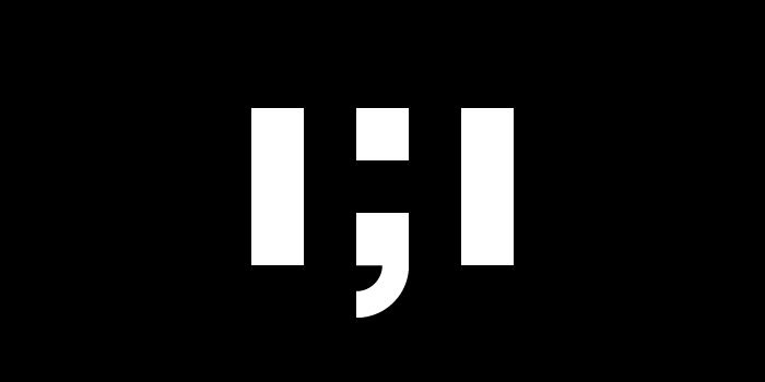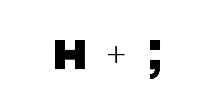 Semicolon [;] symbol smartly appearing in letter H's negative space.